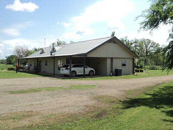 This is a beautiful custom home on five acres located just west of Hugo, Ok in a very nice area on a dead end road. This place is fully furnished and ready to move into. This home is all metal construction on a concrete slab, so this place is built for longevity and beauty. The five acres that the home sets on is landscaped and well manicured, with a sprinkler system to keep the lawn green. There is a nice shop with a concrete floor and electricity, several storage buildings, a green house and a pond on the property. The driveway is of asphalt construction. There are 50 acres that can be leased long term adjacent to the property.