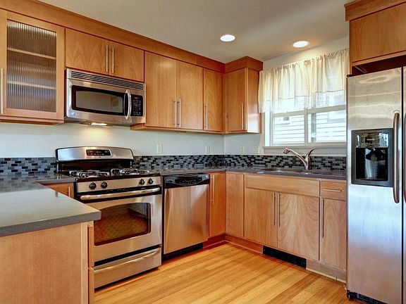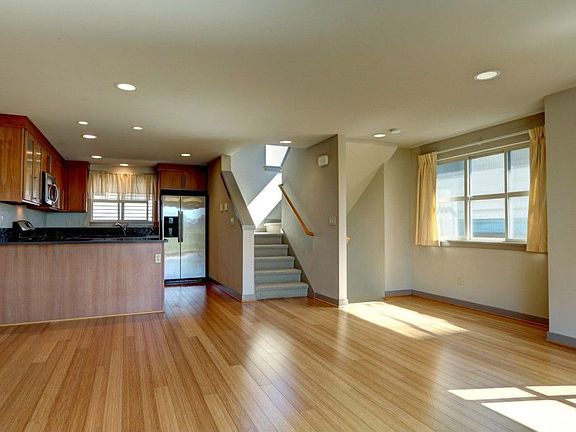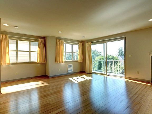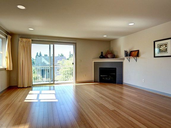 Perfect for UNIVERSITY renters! Downtown and Mt. Rainier views from large south-facing deck at this like new 4 year old townhome. Private backyard. Top notch quality w/bath off each bedroom, large, sunny rooms, stainless appliances, gas fireplace, Caesar-stone slab countertops, open great-room design, energy efficient radiant heating system, security system, vaulted ceilings and more. Walk to Green Lake, Greenwood and easy commute to UofW. Excellent transportation location. Walk Score 83.
