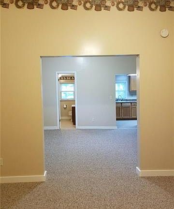 OWN for less than rent! And look at all the room this little house has to offer! Open concept living room and dining room with 10' high ceilings make these rooms and the bedrooms feel grande. Beautiful stained kitchen cabinets with lots of counter space. Fridge and stove included. Spacious full bath with a shower/tub combo. Relax on your front porch while you watch the beautiful Kansas sunsets. New wood patio off the back. Newer paint, carpet, and linoleum. Ceiling fans in living, dining and bedrooms.