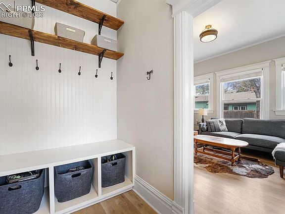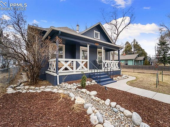 Welcome to this charming home located one block from historic Old North End! Experience the downtown lifestyle in this beautifully updated 3 bedroom, 2 bath home that features modern updates and classic charm! Lovely inside and outside, be greeted by your new favorite hang-out spot on the front porch where you can watch the sunset over Pikes Peak in the evenings and wave to your neighbors as they stroll by. Inside, you will immediately appreciate the updated feel of this home with no lack of historic charm. The entryway features custom built-ins and storage. Off the entry, find one of the three bright bedrooms, and access to the open-concept living and dining area with plenty of space for relaxing or hosting guests. As you walk through the home, notice the large windows letting in ample natural light throughout. Off the dining room, find a second bedroom and the primary bedroom with a modernized en-suite bathroom waiting to impress you. The kitchen is straight off a Pinterest page with updated white cabinets, gold fixtures, granite countertops, stainless steel appliances, open shelving, and a lovely subway tile backsplash. Even more, you will find plenty of additional storage in the oversized pantry! Off the kitchen step outside to the entertainer's dream of a backyard. A custom-built pergola, fully landscaped yard (with maintenance-free artificial turf), fire pit, hot tub and a large partially finished flex space to be used as your gym, home office, she-shed, etc. are waiting to impress! Back inside, check out the second (full) bathroom, and step down to the basement to find a laundry room and a finished bonus room complete with custom built-in shelves for all your storage needs. All this while only minutes away from Colorado College, Good Neighbors Meeting House, the heart of Downtown Colorado Springs, and easy access to I-25 – this is the downtown lifestyle you deserve!