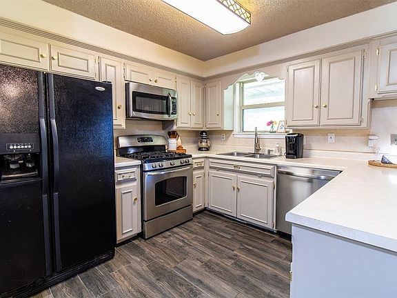 Over 1/2 acre in the city with a 30x30 workshop with electricity, private water well and NO water bill! This lovingly updated 3 bed 2 bath 2 car garage with carport and extended concrete driveway is ready for YOU to call it home! Inviting wood-look flooring in the living room spills into the kitchen that is complete with breakfast bar, tons of storage and a gas stove and then into the dining area that is complete with a freshly updated fireplace mantle and modern floating shelves. All bedrooms are on the opposite end of the home. The master bath has a beautiful step in tiled shower. Good sized secondary rooms share a short hallway with the guest bath which has a private entrance into the 2nd bedroom, and there is significant storage in the hallway. The back yard is so large the 30x30 shop doesn't seem to take up any room at all. Mature trees, a separate fenced area for pets or a garden, and an oversized covered patio make for a private entertainment getaway. Underground storm shelter entrance is on part of the patio making quick access without getting out in the rain that may accompany a storm. All this listed for under $200K makes taking a look totally worthwhile. Call your favorite REALTOR® to schedule a private tour.