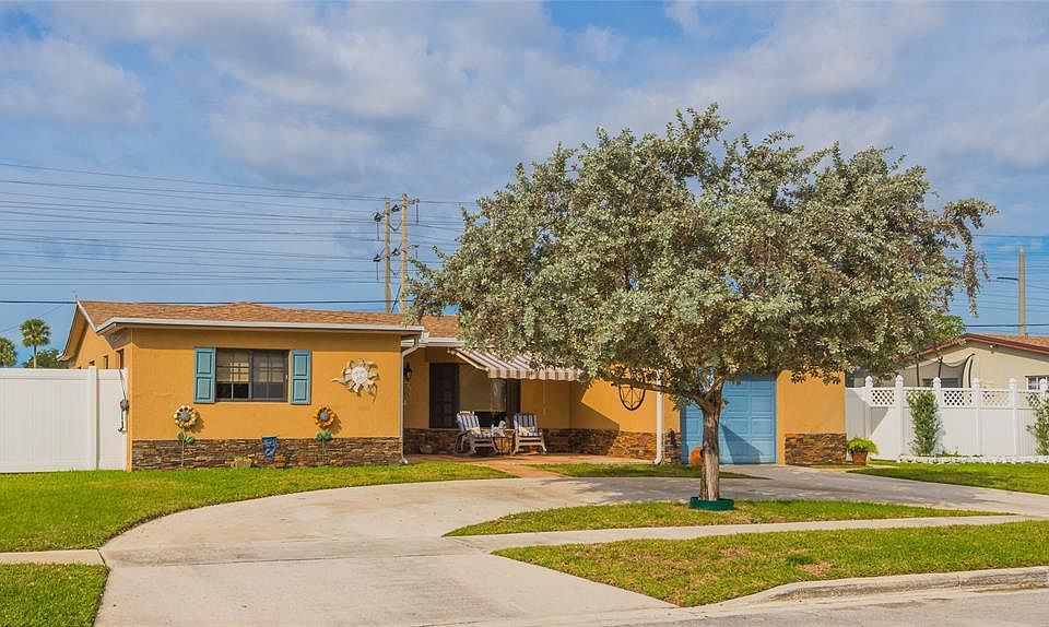Charming 3 Bedroom / 2 Bath / POOL home! This beautiful home is "Move-In Ready" and has been meticulously maintained. Enjoy the Private Fenced backyard - perfect for Entertaining, the family and pets. This home has a Newer Roof (2021), Impact Windows, Modern Design Kitchen w/ Shaker Wood Cabinets, Granite Countertops, Stainless Steel Appliances, Separate Dining /Breakfast area, Tile Floors throughout & LED lighting. Modern Updated Bathrooms, Wood-Like Tile in bedrooms, Walk-In Closet, Cabana Style Bathroom. Spacious outdoor space with Covered Back Patio, Custom Awning (under warranty), Outdoor TV, private Pool with lots of extra room, new Pool Pump (2022), Yard Fenced is Hurricane rated. A/C (2017) & Water Heater (80 Gal) are excellent condition and regularly maintained & serviced. No HOA!