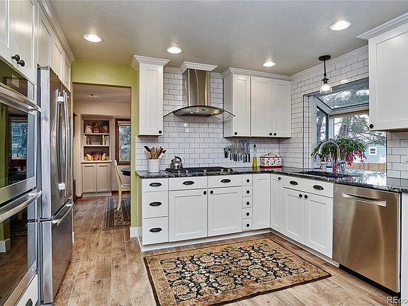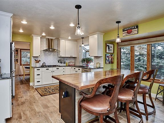 Beautifully remodeled, updated home that is move-in ready with lots of character. Gourmet kitchen includes all stainless steel appliances-Double oven, 5 burner gas cook top, matching hood cover with slab granite counter tops & white tile back splash. Upgraded plumbing, lighting, carpet/flooring throughout. Open main area between the kitchen and family room includes a large butcher block kitchen island with room for bar stools that opens into the family room/fireplace area. Upstairs has 4 good sized bedrooms/office(s). Back yard is private with a large patio area, mature landscaping with Ponderosa Pines, fully fenced, garden boxes, sprinkler system, and 2 storage sheds. Additional driveway space, high/vaulted ceilings, central A/C, large capacity water heater. Great location near downtown Castle Rock.