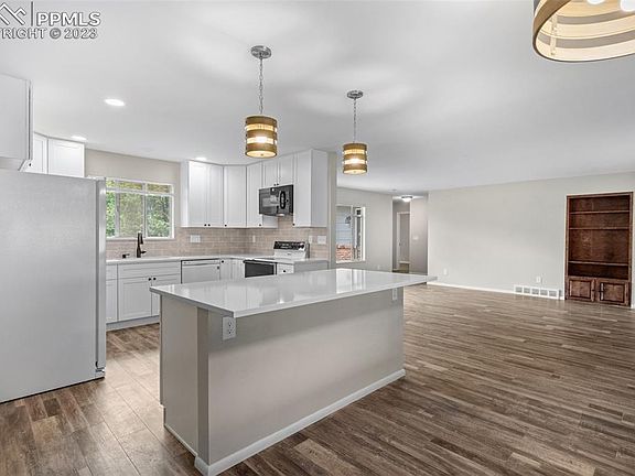 Mid Century Modern remodeled ranch house with no stairs and the finest main level living! Sitting pretty in the Pleasant Valley subdivision this home shines with 3 bedrooms, 2 bathrooms, 2 car garage over 1600 square feet and a bonus office/air bnb room/mini mother in law option with an external Entrance all on one level and totally remodeled. This house is hot to look at and so cool in the air conditioning once you step inside. Close to trails, schools, shopping, the mountains, wildlife, Garden of the Gods and everything Colorado Springs is loved for. There is not one stair in this house! The view of Pikes Peak is impressive, the sparkling white remodel with designer finishes, high end cabinetry, new floors, paint and bathrooms is what makes this a dream house. Oversized back porch, low maintenance yards with garden boxes, ally access to the yard to store all your Colorado adventure toys and a 4 year old roof. Move in ready! Come see this dream house sparkle in real life and make it yours today. Set your private showing today!
