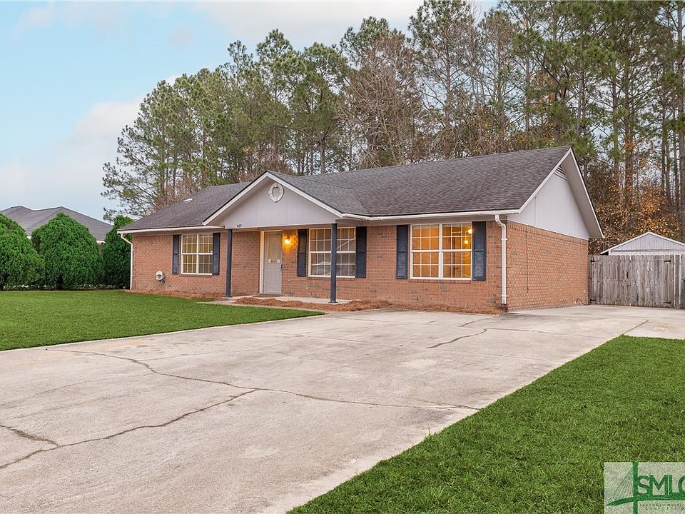 This charming all-brick home convenient to Fort Stewart sits on nearly ½ acre, featuring a wooded rear that extends approximately 150 feet to the property line. The freshly painted interior is highlighted by beautiful wood floors and tile in main living areas, while the spacious kitchen includes stainless appliances and plenty of cabinet space. Additional conveniences include a large laundry room, a master bedroom with double closets, as well as a bath with single vanity and tub/shower combo. Enhance your outdoor experience with double gate access to rear yard to allow for additional parking or boat/RV storage. The privacy fenced backyard comes complete with small and large storage sheds. Seller has pulled up carpets and is providing an up to $5k bedroom flooring allowance for installation prior to closing! Don’t miss this opportunity to make it yours!