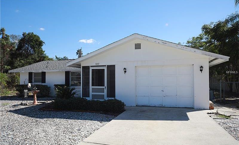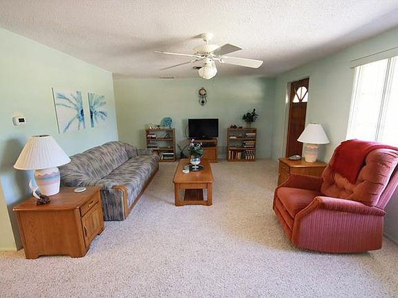 Looking for starter home or are you a snowbird? Then this is the home for you! Split plan with 2 master suites, each with a bathroom, walk-in closets, plenty of windows for lots of light. Could use a little updating but very livable as is. Huge Florida room for entertaining with its own A/C unit. Good appliances and a nice 1-car garage. Come take a look- it's a lot of house for the money. Low upkeep yard with Florida shells no mowing required!