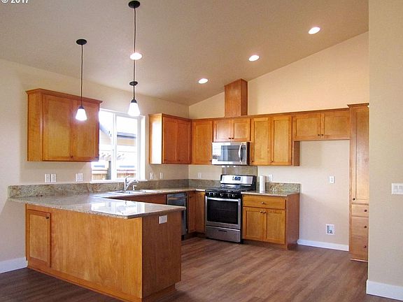 Beautiful brand new home from builder Gary Konold. One level home features CORETec floors, granite counters, vaulted/high ceilings, gas fireplace & Great Room. Dining area w/ slider, kitchen w/ SS appliances, recessed lighting & peninsula with eating bar. Large master suite w/ double sinks & walk-in closet. Laundry/mud rm w/ storage. Fenced backyard, covered patio & in-ground sprinklers. Located only 6 minutes to school, park & stores.