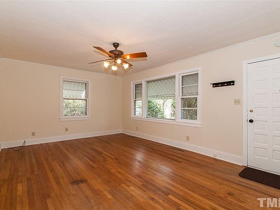 Move in ready 3 bedroom ranch home on fenced .41 acre wooded lot. New heat pump. Hardwood floors, spacious living room, eat in kitchen has dishwasher and refrigerator. Laundry area with dryer and plenty of storage cabinets. 2 car carport, wired workshop with porch area. Additional detached storage shed. Convenient to RTP & Brier Creek