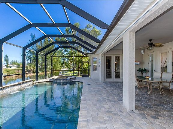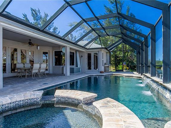 What a great deal! This home has it all! Custom built, one owner situated on a fresh water triple lot conveniently close to shopping, restaurants and easy access to Fort Myers and the beaches! Enjoy your privacy with no through traffic in a quiet neighborhood surrounded by new homes. Additional features include installed hard wired USB charging outlets in kitchen and bath, a hybrid water heater, indoor controls for pool and entire house monitored security system. Kitchen features two breakfast bars, stainless steel appliances, double oven, real wood cabinets and plenty cabinet space with a separate pantry. This beautiful property is absolutely move in ready and features many upgrades such as central vac with crumb tray, 13ft ceilings with multiple custom tray ceilings, formal dining room, open living area with multiple french doors granting access to the large under truss patio. The custom pool and the oversized spa feature a newer pool heater and pool pump and large brick paver pool deck. Enjoy fishing, boating and watching a wide variety of wildlife from the private oversized concrete dock and many miles of canal.