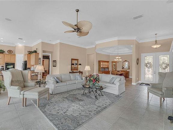 STUNNING would be just one word to describe this rare EXPANDED Riviera model home found that has both CONSERVATION and WATER views! this home is coming furnished including the mounted TV units!Entering you will immediately know that this home has been meticulously cared for by the original owners & no matter what kind of day you have experienced..opening your door to a gorgeous & open view of Florida conservation & water makes for a wonderful way to be greeted. One of the notable features found in this house is the gorgeous all glass corner kitchen view of the conservation & garden areas, prepare your meals in a space offering beauty & style into your kitchen space. Luxury finishes,including quartz countertops,upgraded lighting & custom built in's surround the fireplace. In the living areas you will find double crown molding which adds that extra bit of luxury finish found in million dollar homes, for a much more affordable price. Entering outside you will find an expanded lanai featuring a great "spool" for water exercise, relaxing, or cooling off with friends. Not ready to move in just yet? Solivita allows short term renting, so this furnished house can immediately be available to rent out if necessary.Enjoy Golf,onsite dining and drinking options, entertainment, classes,14 neighborhood pools, a fitness center with indoor walking track,Onsite pharmacy & so much more! This is a rare gem, schedule your opportunity to own this high end Solivita luxury residence with gorgeous views in the heart of Solivita!