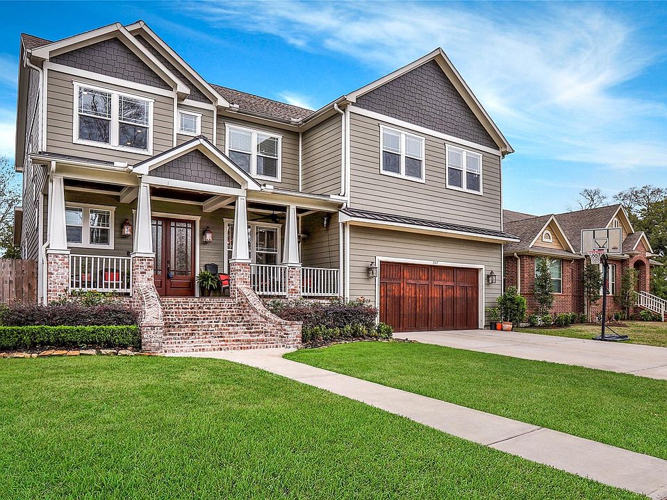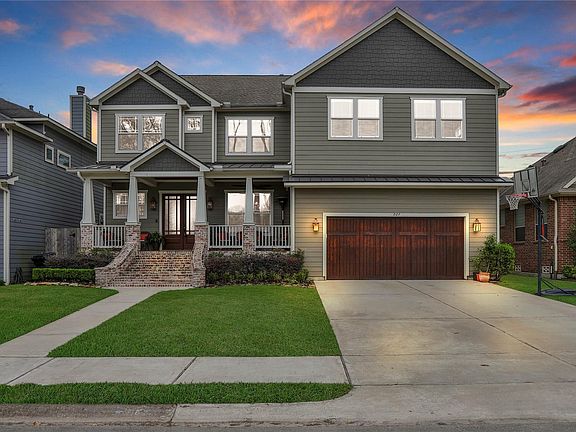 Located in highly sought after Timbergrove Manor is this custom built Craftsman style home. Upon entry is the dramatic soaring 24 ceiling and stairs to 2nd floor with wrought iron ballasts. The heart of the home is the large living room with the brick gas fireplace and direct connection to the kitchen and breakfast room. This chefs kitchen features a large island with enamel farm sink, granite counters, custom cabinets with pull out drawers and stainless Thermador appliances. Tranquil primary suite allows privacy for owners; primary bath has jetted tub and shower w/rain showerhead system; unbelievable closet. Three bedrooms, study, gameroom and two baths complete upstairs. Downstairs utility room has laundry chute and two built in dog crates. Oversized backyard has room for pool and play area. Zoned to Sinclair Elementary. This is a must see! No flooding and house not in 100 yr flood plain per seller!
