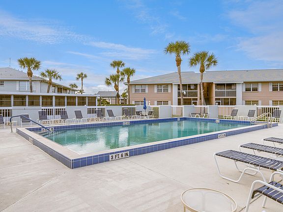 Now eligible for VA financing! This 2-bedroom, 2-bathroom condo boasts an ideal location, just minutes away from shopping, dining, entertainment, and a short drive to the beach. Low monthly fee of $335 includes Water, Sewer, Trash, Roof Replacement, Exterior Maintenance, Structural Insurance, Lawn Care, Landscaping and Amenities. With a well-designed floor plan featuring split bedrooms, updated granite countertops in the kitchen and bathrooms, updated appliances, and convenient in-unit laundry offers both comfort and convenience. The primary bedroom includes a private porch entrance, his and her closets, and a luxurious private water closet with a walk-in shower. The cherry on top is the updated impact windows! The neighborhood amenities include a community pool, bocce ball, horseshoes, shuffleboard, picnic areas with barbecue grills, all covered by the homeowners association! You must own one year prior to renting keeps neighborhood rentals down!