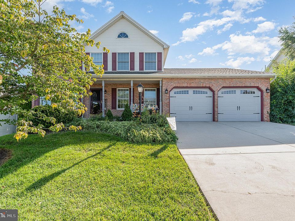 Absolutely beautiful traditional home in a lovely neighborhood setting. Original owner. Wonderful updates! Luxury plank flooring on First level and in the Primary Bedroom, crown molding and wainscoting in the formal Dining room, stunning cabinets and granite counter tops in the Kitchen - just to name a few. Sweet from the street, with well kept flower beds and charming front porch. Foyer leads past the formal Living room to the eat-in Kitchen and Family room in an open floor plan. The family room fireplace was conveniently converted to gas, but can be switched back to wood burning if you like. Step out to the large deck and spacious back yard with mature landscaping. Escape to the owner's suite for a spa experience in the jetted tub with a skylight above. Two more bedrooms and hall bath complete the second level. Additional bedroom on the first floor is currently being used as a den/office. Don't forget the oversized 2 car garage and full basement for extra storage. Close to everything - but tucked away in a quiet community. Move in ready!
