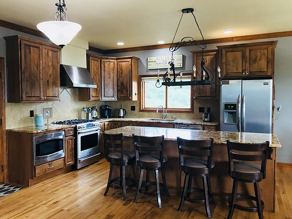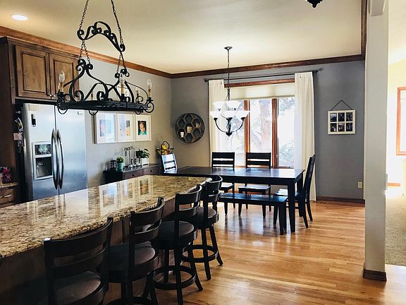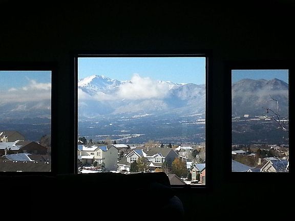 Custom home with unobstructed views of Pikes Peak, front range, and Academy Chapel from backyard and every SW facing window in the house on an edge of the forest lot. High efficiency furnace, 2x6 exterior walls, stone accents on the exterior and around two fireplaces. Gourmet Kitchen with stainless steel appliances, high end slab granite counter tops, pella windows and doors, and knotty alder slow close cabinetry in kitchen and bathrooms. Hardwood floors in Kitchen, Dining Room, and Entry. Main level Master Bedroom with walkout deck with views of Pikes Peak and front range. Master Bathroom slab granite counter tops, jetted tub, porcelain tiles throughout on floor, tub deck, and shower. Large walk-in closet with Washer and Dryer stack. Concrete driveway connected to plowed public street/school bus route. Low maintenance exterior with composite decking, metal railing, stucco, and cultured stone. Large insulated three car garage with garage door openers. Wiring for whole house speakers. Second Bedroom on Main Level could serve as a kids bedroom or office. Large Family room in the basement with a walkout to the same fabulous view of Pike Peaks and front range. Garden level windows in basement (No area wells in lower level living areas). Lower Level unfinished area designed for a fifth bedroom with walk-in closet and full bath. 9 ft ceilings in main level and basement. 6 ft privacy fence in back yard. Landscaped backyard drought resistant w/ sprinkler system, beautiful walk out to large paver patio with pathway to fire pit area, retaining wall, grass area, mature trees, fenced garden area with raised garden beds. Neighborhood Description Quite, friendly, peaceful.