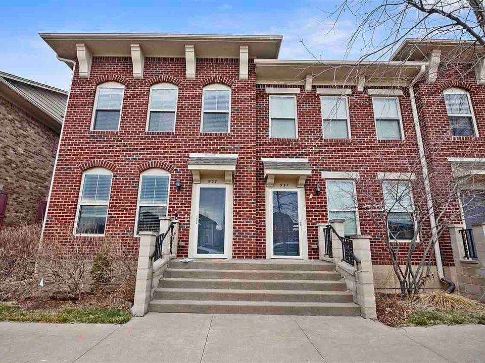 BROWNSTONE WITH CLASSICALLY MODERN INTERIOR across the park and bus stop. Has 3 finished levels with 3 bedrooms and 4 baths. Two primary suites with ensuite baths on upper level and one bedroom and bath on lower level. Granite counters, stainless appliances, and 2-level buffet cabinet in open dining/kitchen. Stylish gas fireplaces in living and family rooms. Fenced yard with a deck and garden areas for private outdoor relaxation. Two-car garage. Across from downtown/Manville Heights bus-route stop and Emma Harvat Square park. Blinds, washer and dryer included. Preferred possession July 2023.