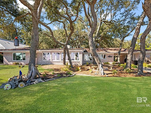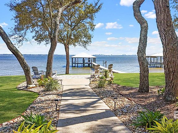 Experience the pinnacle of coastal living in south Alabama, while discovering how one property can functionally amplify the bay front lifestyle you yearn for. The curb appeal speaks for itself as the quaint white washed exterior is framed by enchanting oaks. This spectacular home is 3 bedrooms, 3 baths, 2,663 sf and sits 11.7' above sea level emphasizing eastern and southern views of glistening Perdido Bay. Originally constructed in 1968, then remodeled in 2020 and additionally in 2023, this meticulously maintained property is move-in ready and features upgrades galore. See MLS documents for a detailed list. Fortified roof, impact windows and doors, new HVAC, tankless water heaters, wifi integrated appliances, cabinets, counter tops, boat house with two lifts, fish lights, double bulk head with sandy beach, outdoor shower, rod room, double fireplaces, the list of new and updated features simply go on and on. The thoughtfully laid out site plan containing a 2 car garage, carport/breezeway accessing the rod room, bathroom and utility room enable you to feel as though you are truly able to enjoy the indoor/outdoor lifestyle that the property offers. Views for days simply doesn't accurately describe the sunrises you will experience through the massive oversized windows, while you lounge on the custom built window seats throughout. The large island and open concept living area allows you to maximize entertaining space, while offering a multitude of seating areas. The custom closet doors are a rich, deep dark wood that enhance each bedroom along with the custom window treatments that include blackout curtains. Throughout you'll fall in love with the split brick and travertine floors, adding yet another unique feature to this iconic home. Adjacent lot to the north is also available for purchase separately and features 88' of water frontage next to the community park and boat launch, allowing for no neighbors if home and lot are purchased together. Don't wait to view! Buyer