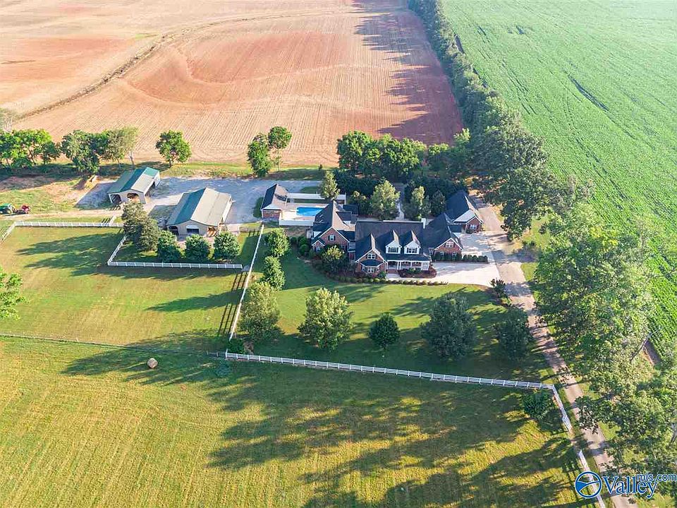 This gorgeous 39 acre estate features 2 completely separate homes on site! The 7400 sq ft main home has just been extensively updated and features dream chef kitchen, open floor plan, luxury amenities and premium finishes throughout. Master bedroom w/ private balcony, separate private powder rooms with adjoining oversize shower. The smaller guest home is perfect for family, friends or longer staying tenants. The beautifully fenced pasture has small cattle pond, main barn and equip pole barn. Entertainers will delight at the inground pool with pretty lanai, custom firepit and outdoor wet bars! 4 Car garage w STORM SAFE room. Mins from Huntsville this home is a MUST SEE!