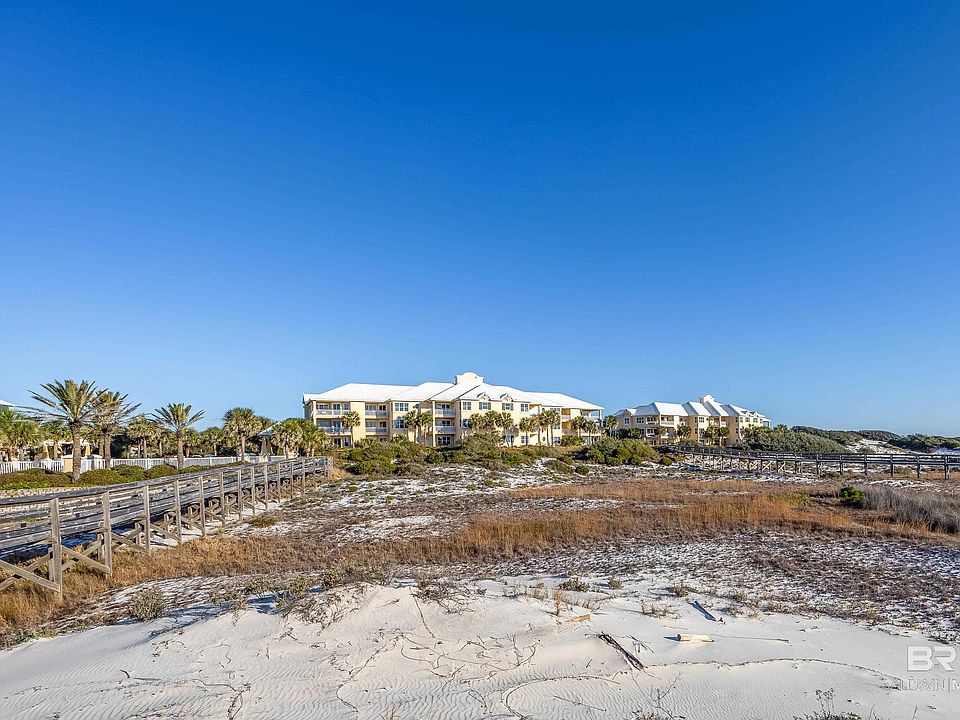 Enjoy your own private getaway seated high above the dunes with a spectacular view of the Gulf of Mexico and surrounded by the Bon Secour Wildlife refuge. Tiled floors, freshly painted, Full sized washer and dryer and new plantation shutters to maximize your views! Owners have just upgraded the bedroom and dining room furniture and added a new wine cooler and entertainment center. This unit is on a rental program with gross rentals of $53,407 in 2023 and $57,014 ytd reservations for 2024. the complex is very private, low density gated community that is golf cart friendly and with indoor and outdoor pools, kiddie pools, clubhouse, spa/hot tub, tennis/racquetball with lush landscaping. Come check this unit out and see how special and relaxing it is! Buyer to verify all information during due diligence.