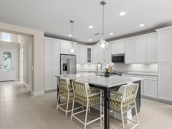 Welcome to Your Slice of Paradise on Paradise Drive! Step into the laid-back elegance of Latitude Margaritaville Watersound—a 55+ coastal dream community inspired by Jimmy Buffett's breezy lifestyle and tucked away in Florida's scenic panhandle. This barely lived-in Breeze model from the sought-after Beach Collection is situated in Phase Five on a lush preserve lot, offering both privacy and pristine beauty. Inside, this sun-soaked home radiates with style and upgrades at every turn. You'll find tile floors throughout, elegant 8-foot doors, , French doors to the den, and a cool deck patio—perfect for relaxing or entertaining. The gourmet kitchen is a true showstopper with an extended island, sleek quartz countertops, custom pots & pans drawers, a pull-out pantry, and premium lighting. The spa-worthy primary bath features tile to the ceiling, a stunning frameless glass shower enclosure, and elevated finishes that make every day feel like a getaway. ✨ Other notable upgrades include: Designer lighting throughout Custom trim and upgraded fixtures Bonus slider door for extra light and indoor-outdoor living Added outdoor outlets & electrical enhancements Oversized paver driveway for added convenience Just a short golf cart ride to the Town Square, where the fun never stops! Amenities include Barkaritaville Dog Park, Fins Up! Fitness Center, tennis & pickleball courts, bocce ball, lawn games, and the legendary Paradise Pool. Dine at Latitude Bar & Chill, launch a kayak at the Port of Indecision, or catch a concert at the amphitheater under the stars. Don't miss the newly opened Workin' N' Playin' Center and exciting additions like the Publix at Watersound West Bay shopping center nearby. 🌊 Only: 10 miles to sugar-white Gulf beaches 15 minutes to ECP Airport 10 minutes to the new Tallahassee Memorial Primary Care Campus Why wait to build when this upgraded beauty is move-in ready? Just unpack, pour a margarita, and start living your best life. Your paradise awaits—come claim it.