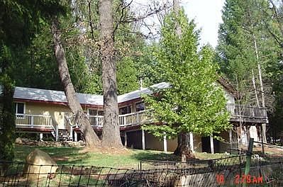 Very private location nestled beneath the trees! Several sliding glass doors off living area. Kitchen has white cabinets, white appliances (missing oven/range combo) and recessed lighting. Great opportunity!!