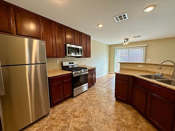 Step into this warm and inviting 3-bedroom, 2.5-bathroom home, designed for comfort and easy living. Freshly painted throughout, the home features no carpet, providing a practical and timeless appeal. The kitchen is thoughtfully equipped with stainless steel appliances, offering everything you need to cook and gather with ease. Outside, you'll find a spacious backyard that's perfect for relaxing or entertaining, complete with a covered patio for shade and a low-maintenance turf area that stays green year-round. Make this house your next home today! GO TO RPMLV.COM TO APPLY ONLINE AND FOR VIEWING THE PROPERTY BY CLICKING ON THE LISTING $400 ADMIN FEE (NON-REFUNDABLE) $55.95 RESIDENT BENEFITS PACKAGE INCLUDES INSURANCE $45 SEWER & TRASH MONTHLY $500 PET FEE PER PET (NON-REFUNDABLE) 2 ANIMALS MAX NO SMOKING ALLOWED Tenant required to maintain Liability Insurance throughout lease term. Minimum $100,000.00 Liability policy naming Rentmax Property Management as "additionally interested party" on policy.