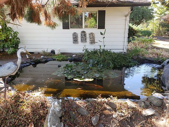 Charming 14+ acres of landscaping and walking trails make this a true sanctuary. With 500 ft of Amazon Creek frontage, shop, Art/craft studio and greenhouse, options abound. Relax in the gazebo or enjoy the Koi in their own filtered pond. 13 gpm well, irrigation pond and garden area. Home is a 3/2 Ranch style with 2 car garage. It is well cared for, but needs updating. Minutes away from Eugene or lake. Motivated sellers bring offers