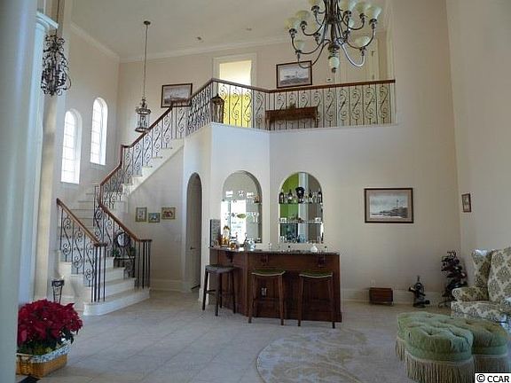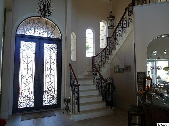 Beautiful Mediterranean Home On 2nd Hole Members Golf Course With Ornate Staircase, Wet Bar in Living Room, Large Gourmet Kitchen: Viking Appliances, Large Center Island; Steel Frame Construction. 5 BR(3 Down, 2 Up), 4 Full Baths, One Half Bath Which Is A Cabana Bath To Beautiful Pool and Spa; Large Travertine Patio Surrounding The Pool and Spa, Outdoor Kitchen With Grill and Large Gas Burner, Large Master With Ornate Master Bath, Large Family Room With Cast Stone Fireplace, Formal Dining Set Off By Columns, Breakfast Room, Laundry Room. Tankless Hot Water Heaters, Mist Away Bug System in Front and Back Yards. One of The Few 5BR Homes in all of Grande Dunes.