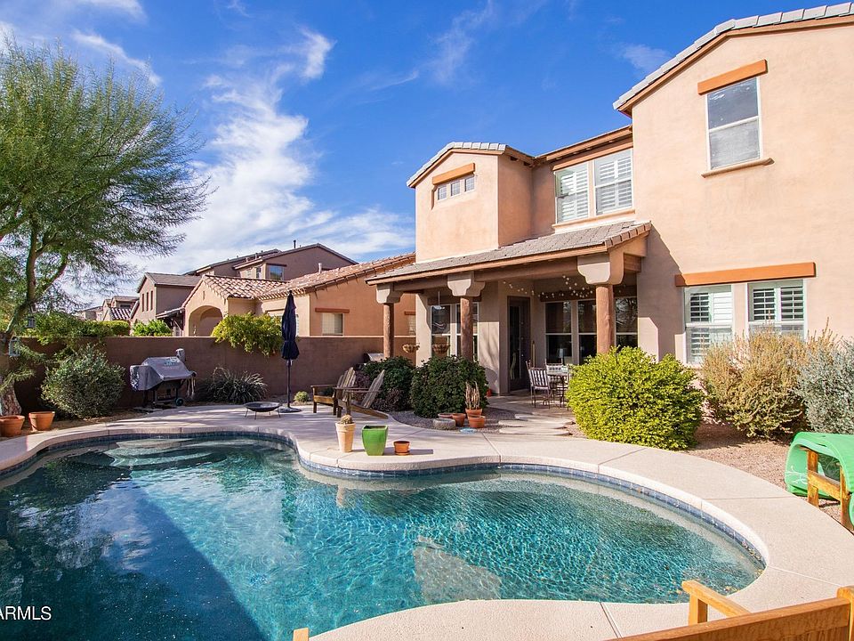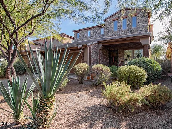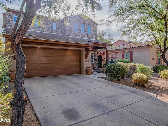 Gorgeous home available in prestigious amenity rich DC Ranch. Beautiful inside & out! Stone front leads you to charming front porch! Dramatic soaring ceilings & high windows for an abundance of natural light!! Functional Floorplan for kids/work! Kitchen will delight any chef w/gas cooking, granite counter tops, cherry wood cabinetry, double ovens & island w/breakfast bar seating. Loft upstairs w/lots of possibilities. Downstairs office or change into 4th Bedroom. Master retreat includes a private en-suite w/dual sinks, soaking tub & separate shower. Backyard is open, private & features sparkling lagoon style pool! Steps from Grassy play areas. Community offers Fitness, Tennis, Hiking, Pool/Spas & more! Close to Schools, Freeways, World Class Golf, Shopping & Dining! Welcome Home!