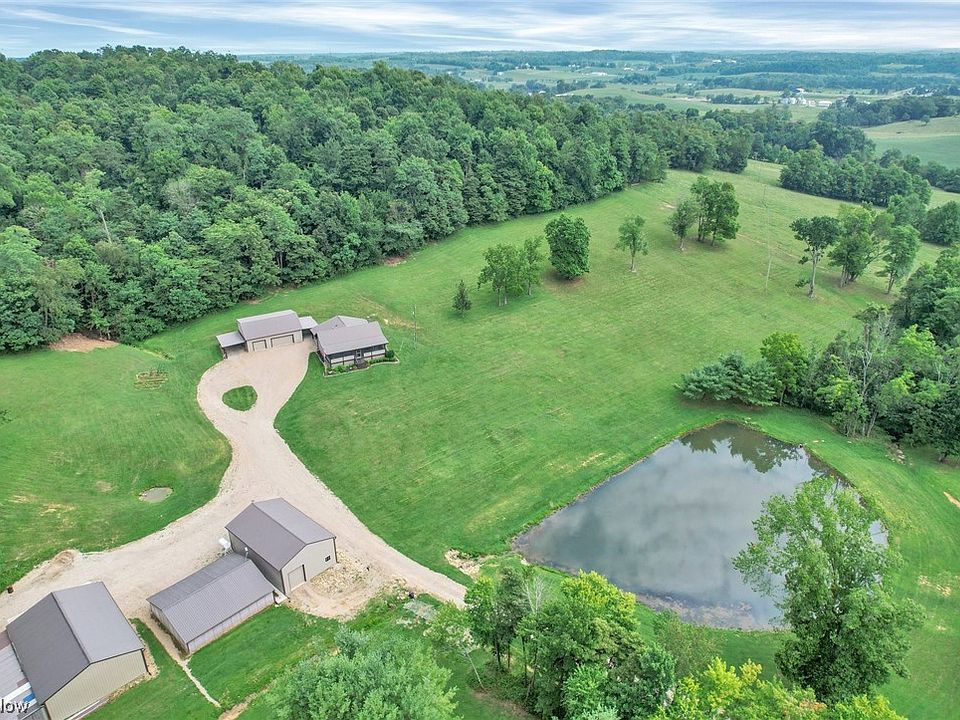 Fantastic country living! This quality built; log home is nestled on 54.68 serene acres of some of the prettiest land in Licking County! Property offers gorgeous views of the gently rolling terrain, stocked pond, mature woods where wildlife abounds & established trails. Several large outbuildings provide endless possibilities! 3+ car garage w/ a partially finished upper level. Wonderful home has an expansive screened porch – the perfect retreat! Improvements include a freshly painted exterior, whole house generator, metal roofs, newer HWT, newer FF bathroom flooring & an updated kitchen. Vaulted great rm w/ a wb stove and an exceptional FF primary bedroom with a 12’ ceiling & an attached private screened porch. 2 convenient laundry areas & a finished lower level. Must see to appreciate!