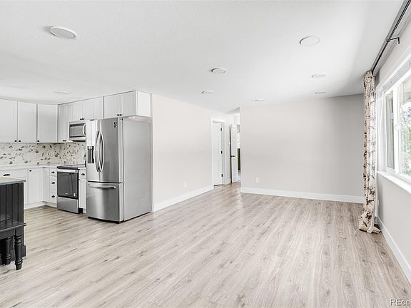 Modern elegance and comfort harmonize in this ranch-style home freshly remodeled in 2021. Wide plank flooring flows through the open floorplan, seamlessly adjoining the spacious living area w/ the bright kitchen. The home chef’s workspace is complete w/ all-white cabinetry, quartz countertops, a tiled backsplash and an island w/ stained teak wood. Enjoy late-morning brunch in a breakfast nook w/ a built-in bench. The sizable primary bedroom boasts a walk-in closet with space to add a primary bathroom, while a secondary bedroom features floor-to-ceiling built-in shelving. A remodeled hall bath completes the main level. Downstairs, a finished basement adorned w/ gorgeous wood ceilings and a cozy fireplace hosts two additional bedrooms (one is non-conforming), plus a bonus room perfect for a craft room, a remodeled bath and a laundry room with exposed ceilings. Escape outdoors to a sprawling backyard featuring a covered stamped patio with gorgeous planter boxes, stained glass adornments, built-in garden beds, new cedar fence and a large lawn waiting for your green thumb. The 1 car garage is oversized and there is additional parking next to the driveway. This home has tons of upgrades, but still has room to add even more equity and personal touches! Upgrades include newer windows, roof and gutters, an upgraded A/C unit and new light fixtures. A central location offers seamless access to Old Towne Arvada, shopping, parks and trails. Majestic View Nature Center is just a 5 minute walk!