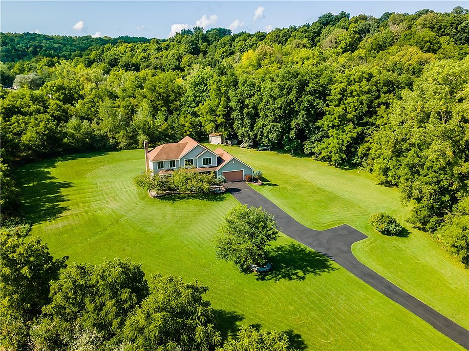 SPECTACULAR COUNTRY ESTATE, BORDERING A CREEK WITH 5 ACRES! BUILDER'S OWN CONTEMPORARY... EXCEPTIONAL QUALITY! PEACEFUL, PRIVATE & JUST BEAUTIFUL DESCRIBES THIS AMAZING PROPERTY! ENJOY NATURE ALL AROUND YOU WITH THIS CREEKSIDE SETTING, SPRAWLING BACKYARD & SCENIC WOODS! ARCHITECT DESIGNED & QUALITY BUILT CONTEMPORARY BY ANH LE WITH MANY CUSTOM FEATURES! TWO STORY FOYER WITH HARDWOOD FLOORS LEADING TO THE ENTERTAINMENT SIZED DINING ROOM WITH A RECESSED CEILING & LIVING ROOM WITH A BAY WINDOW! SPECTACULAR GREAT ROOM WITH A COUNTRY KITCHEN WITH AN EXPANSIVE CENTER ISLAND OPEN TO THE NATURE VIEW DINING AREA & SPACIOUS FAMILY ROOM WITH A GORGEOUS BRICK FIREPLACE! CONVENIENT 1ST FLOOR LAUNDRY & POWDER ROOM! THE EXCITEMENT CONTINUES UPSTAIRS WITH 4 BEDROOMS & 2 BATHS, INCLUDING A PRIVATE & SPACIOUS OWNER'S SUITE! TRANQUIL COUNTRY SETTING WITH AN ENTERTAINMENT SIZED DECK OVERLOOKING THE SPRAWLING BACKYARD, CREEK & WOODS... EXPANSIVE FRONT PORCH! 5 ACRES PROVIDES ROOM FOR HORSES! NEARBY HONEOYE LAKE WITH EASY ACCESS TO CANANDAIGUA, THE ENTIRE FINGER LAKES REGION & ROCHESTER!