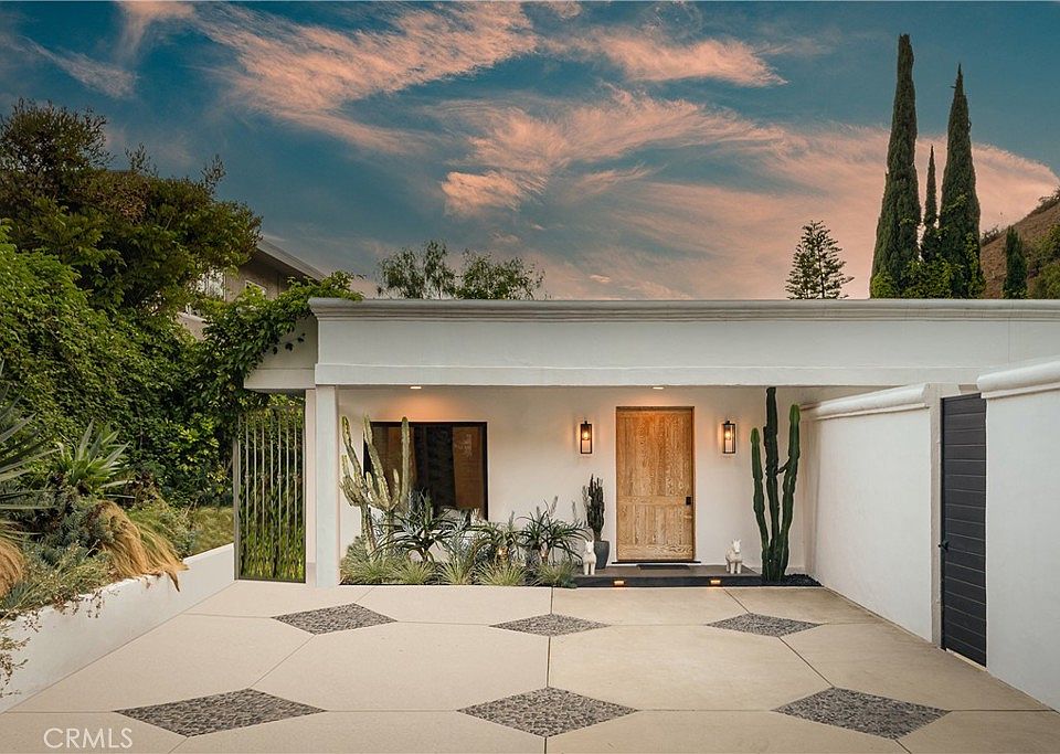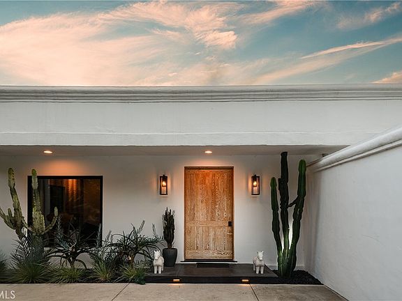 Perched on a serene cul-de-sac just above Sunset Boulevard in the coveted Bird Streets, this meticulously redesigned single-story residence blends high-end luxury with effortless indoor/outdoor living. Spanning approximately 2,300 sq ft on an expansive 8,400+ sq ft lot, the home features 3 bedrooms, 4 bathrooms, and a versatile den, all thoughtfully laid out for comfort and entertaining. Inside, a sun-filled open floor plan adorned with high end finishes, custom Parisian wall coverings, recessed lighting, and designer details throughout. The gourmet kitchen boasts top-of-the-line Miele appliances and sleek marble countertops, flowing seamlessly into the formal living room with an elegant statement fireplace. The spacious primary suite offers a custom closet, spa-like bathroom with a walk-in steam shower, spa tub, sauna, and dual custom vanities. Each bathroom has been exquisitely upgraded with luxurious materials and finishes. Outdoors, the beautifully landscaped flat backyard features a sparkling pool and patio space perfect for entertaining, all set against tranquil treetop canyon views. Additional highlights include state-of-the-art surround sound, security camera system, and newly painted interiors. Rare for the area, the property includes a gated private driveway with 4 parking spaces. Ideally located just minutes from the Sunset Strip, Soho House, Sunset Plaza, and Beverly Hills, this Hollywood Hills gem offers style, privacy, and convenience in one stunning package.