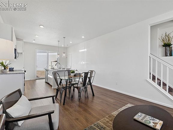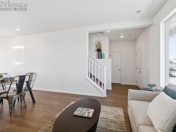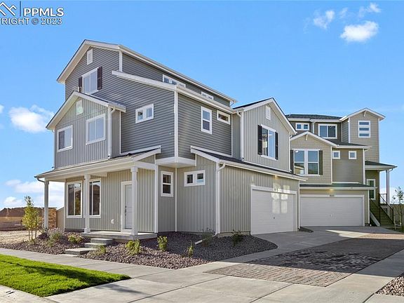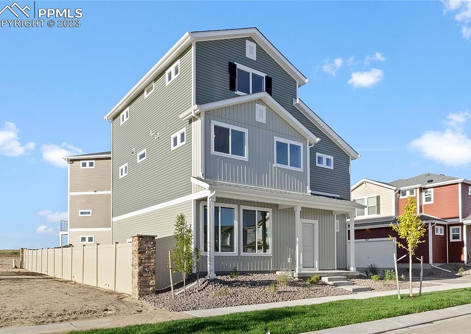 Step inside this open and beautiful home featuring 1944 square feet of modern living space in Banning Lewis Ranch! A powder bath and coat closet are located just off the foyer for family and guest convenience. Round the corner to the open great room, dining area, and kitchen that are covered in large windows to allow in an abundance of light. The kitchen features enough cabinetry and storage (including a pantry) for all your cooking essentials and a large granite island perfect for quiet nights in or large gatherings. On those warm summer nights step out onto the patio and bask in the always-welcoming Colorado weather. Race upstairs to the second story that houses the spacious primary suite, complete with an attached bathroom, double vanity, and walk-in closet. Two large secondary bedrooms are just down the hallway with an additional full bathroom conveniently located between them. The laundry space is located in between all the bedrooms, just off of the primary suite for convenience. The third floor houses the spacious Smart Space to be used how you see fit. These homes are built in cul-de-sacs with shared driveways.
