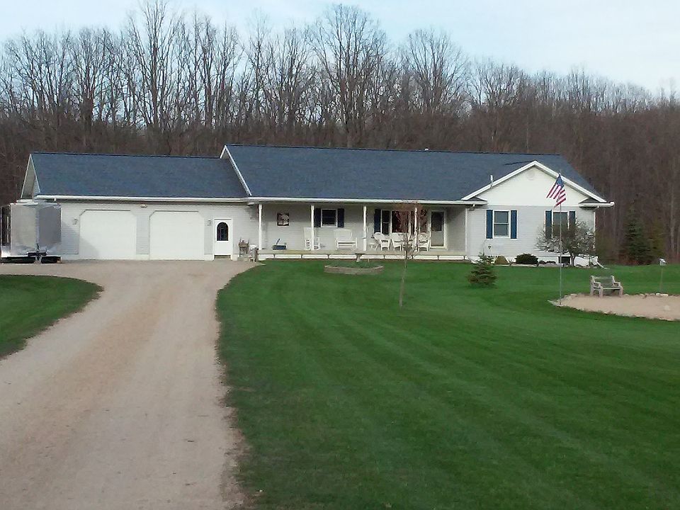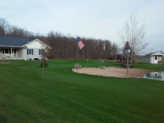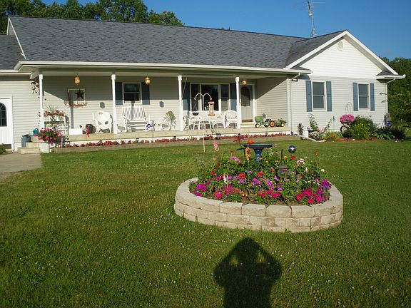 Beautiful ranch home on 19 acres overlooking a stocked pond in the front yard and the woods in back. Approximately 12 acres of woods. Home features oak kitchen cabinets with hardwood flooring continuing in the dining area. Living room has cathedral ceiling with two picture windows overlooking the front and back yard. it also features an open stair case to the basement family room. This family room is large in size with a gas fireplace. Master Suite has walk in closet and master bath with double sinks. Cement front porch is low maintenance 36 X 8 under this beautiful front porch is a cellar/ basement that can be used for different purposes . Home has a kinetico water softener, 2X6 walls, forced air heat and central air. Garage is finished and heated with running water. Pole barn is 24X40X10 with a 13X40 lean to. Located next to the pole barn is a heated hip roof workshop 16X32. There is a small building 8X16 for pond accessories. Many more features not listed.