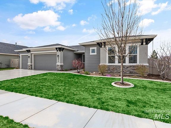 Fabulous single level, turn key residence in North Kuna. This modern style home sits on a generous corner lot with no rear neighbors and radiates with pride of ownership. The interior features a split bedroom design, 4 bedrooms plus an office, and an open floorplan. The spacious kitchen boasts quartz countertops, stainless appliances, large kitchen island for food prep, beautiful cabinetry and full tiled backsplash. A gorgeous corner stone fireplace is the focal point of the great room adjacent to the kitchen and features an additional dining space for entertaining large groups. The owners bedroom is a quiet retreat complete with a private bath, his & hers vanities, quartz countertops, soaker tub and spacious closet. This home has an abundance of natural light throughout, tons of storage & has been gracefully lived in. Fully turn-key, the home has been professionally cleaned and is ready for new owners to love as the previous owner has. Come and see for yourself, you won't be disappointed!