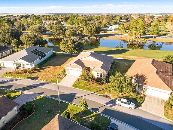 Wake up every day to the sunshine sparkling off the morning due on the 18th fairway, in one of the most desirable, gated retirement communities in central Florida. There's plenty of room in this two bed, two bath custom home that offers an extra flex room for your office, den, or formal dining room. Granite counters, distressed white cabinets, tile and beautifully hand-scraped hard wood floors throughout, crown molding, wired for surround sound, and the list goes on. There's loads of cabinet space in the extended kitchen for the chef in us all. Oh, and the neighbors are awesome as well. It's a block party every winter with lighted bags lining all the neighborhood roads, unique among the rest of On Top Of The World! Golf cart access to two shopping centers, and many more amenities.