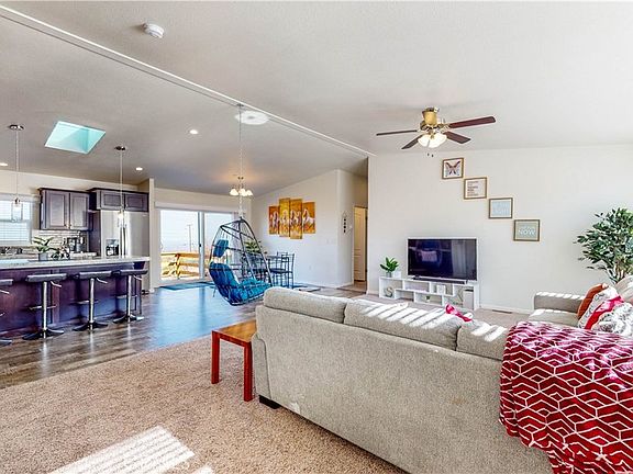 Inside, the inviting interior welcomes you with an open floor plan highlighted by sleek kitchen countertops, stainless steel appliances, recessed lighting, and a convenient bar island. An upgraded deck enhances your experience with breathtaking panoramic views. Property features ample parking space for multiple vehicles. Also included in the sale is a newer spa to accommodate the beautiful views. Don’t miss the opportunity to explore this home in person and discover its true essence.