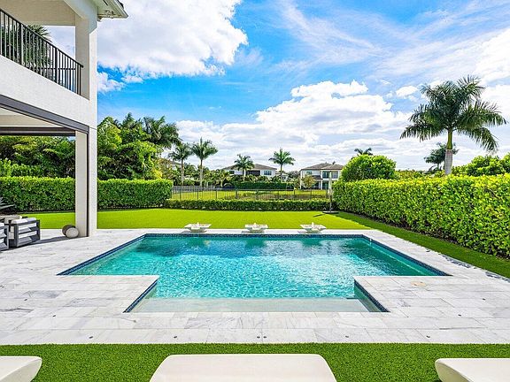 Experience Luxury Living in this custom built, stunning Palermo Model Estate in the Exclusive Gated Community of Boca Bridges. This home is simply gorgeous! From its magnificent curb appeal and breathtaking expansive backyard with water views, to its designer-decorated interior, this home will delight even the most discerning buyer. Furnished throughout by Artefacto, Restoration Hardware, Arhaus, CB2 and more, this listing shows like a model! This stunning home features Long Lake Views, 6 True Bedrooms, 8 Bathrooms, a Movie Room, a Loft, a 4 Car Air-Conditioned Garage, a Fully Turfed Extra Large Backyard with ''Hamptons Style'' Pool, 2 Laundry Rooms, a Gourmet Chef's Kitchen with an Extra Long Waterfall Island, 60 Inch Subzero Fridge, 48 Inch 8 Burner Stove, and 2 dishwashers. This unique home features beautiful custom flooring throughout which was installed after closing and not through the builder. The first floor features 24 x 48 large format porcelain tiles, while the lower guest bedroom, movie room, and the entire second floor feature 10.5 inch wide light oak wood flooring. Every corner of the home was thoroughly crafted and carried out in the most designer-appointed way. The generously sized yet private backyard was curated to perfection from every angle with its oversized "Hamptons Style" pool, custom gas bbq area, Restoration Hardware outdoor furnishings, and expansive, fully turfed lawn. Enjoy long lake views and gorgeous "cotton candy skies" every evening from your very own South/West facing backyard! For Privacy, This home is outfitted with high-end window treatments and automated shades throughout. You really have to see this home to believe it! No expense was spared.