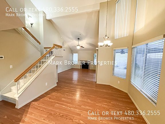 Welcome to this beautiful home in Scottsdale, where style and comfort meet! Vaulted ceilings throughout create an open and airy feel, while two-tone paint adds warmth and charm. The cozy fireplace in the living area invites relaxation, and the formal dining room is perfect for hosting gatherings. The home features gorgeous tile and laminate wood flooring on the main level, with carpet upstairs for added comfort. The open-concept kitchen is a chef's dream, complete with a breakfast bar, granite countertops, ample counter and cabinet space, and elegant wood cabinetry. Updated light fixtures add a modern touch. The primary bedroom is conveniently located downstairs, offering privacy, and includes a large walk-in closet and a breathtaking ensuite bathroom with dual sinks and a huge glass-block walk-in shower with bench. Upstairs, you'll find a loft and generously sized guest bedrooms, each with access to a spacious balconyperfect for enjoying the outdoors. A full guest bathroom serves the upstairs bedrooms. The backyard is a serene retreat featuring a covered patio, lush landscaping, and a turf patch, offering plenty of privacy and space for relaxation or entertaining. A gardener visits once a month to handle cleanup and trimming, keeping the yard in pristine condition. Additional features include large storage closets in the garage and a beautifully maintained front yard by the HOA. Nestled in the desirable and quiet Scottsdale Hills community, this home offers access to a sparkling community pool, nearby tennis courts, parks, and playgrounds. Redfield Elementary School is within close walking distance, adding to the neighborhood's appeal. With its prime location near dining, shopping, and easy freeway access, this home perfectly combines convenience and luxury. Don't miss your chance to call this Scottsdale gem homeapply today! *1 Dog Allowed (Under 25 lbs.); Sorry, No Cats! Other leasing fees: $50 per adult application fee $200 admin fee upon lease signing $20/1st pet $15/2nd pet application fees (if applicable) 2% monthly admin fee $300 non refundable pet fee- per pet (if applicable) Security deposit equal to one month's rent (interested in paying $0 security deposit? Ask us about our alternative Security Options) Renters insurance required $24.50 Resident Benefits Package All Mark Brower Properties, LLC residents are enrolled in the Resident Benefits Package (RBP) for $24.50/month which includes liability insurance(+$10), credit building to help boost the resident's credit score with timely rent payments, up to $1M Identity Theft Protection, HVAC air filter delivery (for applicable properties), move-in concierge service making utility connection and home service setup a breeze during your move-in, our best-in-class resident rewards program, and much more! More details upon application.