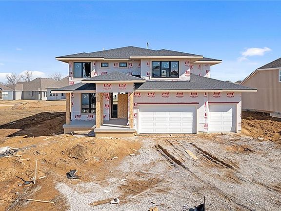 Welcome home to the award-winning Makenna 2 story by Gabriel Homes. This is a Contemporary Elevation on a great lot with full basement. This popular plan features 4 beds & 3.1 baths, an open concept kitchen/breakfast room/great room, main floor office just off the entry, HUGE master bedroom with a sitting room for your quiet get-away. An amazing master bathroom with 2 shower heads and a whirlpool tub and over-sized closet. Large secondary bedrooms with walk-in closets. 2nd floor laundry, great covered patio, 3 car garage, irrigation system. Pictures are of a similar home. Prairie View at Creekside Woods is a new homes community w/ high-quality homes available now & 77 new lots. Feeds into premier Olathe Schools - Canyon Creek Elementary, Prairie Trail Middle and Olathe NW High School. If you’re interested in a ground-up build, we have fabulous lots, 5 reputable builders to choose from w/ fantastic plans.