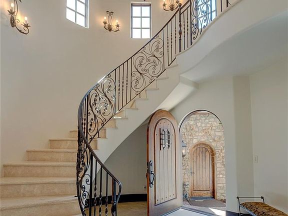 Enter the Grand Gates of this community and you instantly feel like you are on vacation in a 5-star resort. This home backs to one of the most beautiful lakes and waterfalls in the entire golf course community. As you walk into the quaint gated courtyard with a water fountain, you will see french doors that lead to a gorgeous study/bedroom with an en-suite bath. As you walk into the front door, you see a beautiful a 2 story luxurious travertine staircase leading to a private 2nd floor secondary master suite with its own bath, gorgeous fireplace and a juliet balcony located exclusively on its own floor. The main floor has a huge 2-story great room with custom wood beams, rare walnut floors, beautiful custom kitchen with 2 large islands and counter seating for 5, copper sinks, Wolfe professional gas range, Sub Zero refrigerator, trash compactor and high end appliances. 5 French doors lead to the huge covered patio which has a custom 2 sided fireplace, tv, built in Viking Grill. Perfect outdoor living room with an amazing view of the water, waterfall and golf course. A gorgeous view of the pond and waterfall, built-in custom hot tub with waterfall off of the main floor master makes this a truly unique property. The Master suite has a custom fireplace, private french doors to your own built in hot tub with a 6 piece master bath to include steam shower, a bidet, claw foot tub and dual vanities and huge custom closet. A private dining room with a gorgeous view of the water and golf course. It is truly resort style living. The walkout basement has a beautiful 200+ bottle wine room, family room with a gas fireplace and full service bar with clear ice maker with seating for 6+, pool table area, 4 large french doors lead out to the covered spacious patio, a fire pit is located with a gorgeous view of the pond, 3 water features provide a tranquil sound and view as you sit and enjoy the fire pit and view of the pond and large waterfall complete with wildlife.