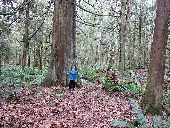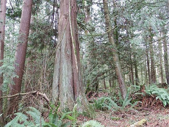 Beautifully treed acreage with two great potential building sites (zoning allows for just one residential building). View from northwesterly portion of property of islands and snow capped (in winter) mountains. Seasonal creek. Old culvert. Large cedar trees among deciduous trees and beautiful ferns. Gated entry with walking trails. Buyer to assume Open Space taxation.