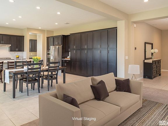 Beautiful nearly brand new home in South Reno in the Bella Vista Ranch development by Toll Brothers! 4 large bedrooms, 3.5 bathrooms, 3689sf, lots of open space downstairs in the great room, and upstairs in the loft. The backyard is one of the larger ones in the neighborhood, with a large, covered patio off the living room, and nice landscaping. The kitchen is a dream with quartz counters, a huge island, and upgraded and expanded maple cabinets. There is a large pantry off the mud room. The master suite has a large, covered balcony, huge walk-in closet with beautiful custom built-ins, an enormous dual headed shower and plenty of counter space with dual sinks. Three out of the four bedrooms have custom cabinetry in the walk-in closets. The 3-car garage has epoxy coating and a 220-volt outlet for car charging. The location is excellent - only a few homes away from the clubhouse, which boasts an outdoor swimming pool, hot tub, gym, covered seating areas, picnic areas, tot lot, and awesome indoor amenities. Tenant to pay NV Energy, Truckee Meadows Water Authority, and Waste Management. Pets are allowed with an additional amount per month of pet rent.