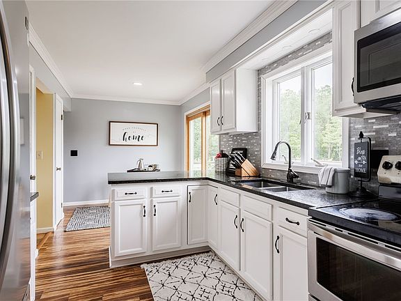 Lions, tigers and bears......or horses, goats and chickens! This FIVE acre farm sits 300 feet back from the road and is ready for new owners! The updated home has three bedrooms and 2.5 baths! The eat in kitchen is large and opens to the deck and gorgeous views of your homestead! FIRST FLOOR LAUNDRY is a major convenience! The basement is clean and dry - currently a work out space and spot for the seller's canning/harvesting. The real tree stair banister is amazing! The ceilings have been updated to included real wood planks, giving this home a country feel! Fruit trees, raspberry rows, an established garden, and outbuildings (chicken coop, pig pen and barn) for your livestock will get your farm dreams started. There is even a stream with a campsite all ready for your overnite camp outs! Updates including NEW furnace 2015/ HW tank 2014/siding 2014/kitchen 2016/gutters 2016/refinished hardwood floors 2016/garage door opener 2014/stoned driveway 2016. Shed at end of driveway does not convey. Open house Saturday 6/28 from 1-3 p.m. Negotiations begin Tuesday July 1, at noon. Livestock and canning in photos not included