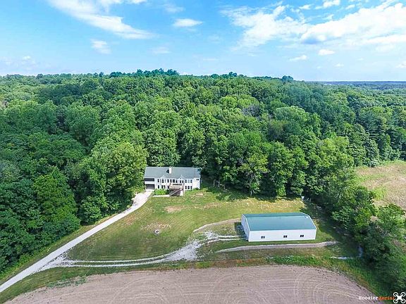 Welcome to Raccoon Creek Farm! This 40 acre retreat evokes every sense in a naturalist on the interior as well as the exterior and lives up to its name. This custom built is perched above a beautiful country vista which is enjoyed by southern facing walls of windows and surrounded by woods in the back. Almost 4,000 sq ft of living space has many offerings with large living room and dining area that share a double sided floor to ceiling stone fireplace and soaring ceilings, kitchen with great workspace, walk-in pantry, custom cabinetry, island and breakfast bar. Master bedroom that will spoil you with its walk-in dressing room, bath with jetted soaking tub and cozy bedroom. Large 10x16 laundry room on main level. Lower level has a nice bedroom with great views and walk-in closet, full bath, den area, studio that could be 3rd bedroom and family room with recreational area and wet bar, mechanical room with storage. There is a a huge screened in porch accessed off of kitchen and living room that extends entertaining space to the max, upper deck and lower patio take in the breathtaking view. The woods have been lovingly maintained like a private park with walking paths and mature trees.72x32 pole building with 200 amps, concrete floor and drive thru overhead doors.