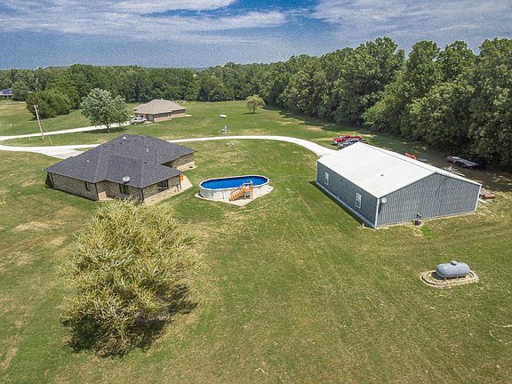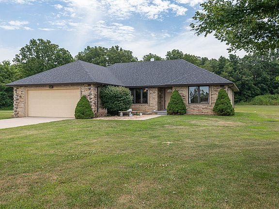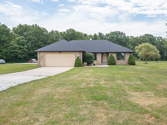 Custom built all brick one level home on 5 acres m/l with a 40 x 48 insulated outbuilding/shop and a 13 x 48 attached apartment with 1-bedroom, 1-full bathroom, full kitchen and dining area, breakfast bar, laundry closet, forced air heat, central electric AC, electric water heater, & apartment has cellulose insulation. Just a 20-minute drive to Springfield and 30 minutes to Stockton Lake! There is much to love and appreciate about this home and 5 acres including an above ground pool attached to a concrete pad. From the time you enter the home you will know the home has been well maintained. The home features a 3 bedroom split floor-plan, 2 spacious living areas, new roof, new carpeting, some updated tile flooring in kitchen/dining and laundry room, kitchen/dining breakfast bar, tile entry and some hallway flooring, tiled kitchen back splash, some new Ceiling fans, all new window sashes, central vacuum system, ring doorbell, microwave 1 year, dishwasher less than 5 years, double oven that is handy at holidays, spacious laundry room with built-in ironing board, pantry cabinet, gas log fireplace in the formal living room and a pellet stove in the spacious family room, formal dining room with column, kitchen dining breakfast bar, master bedroom bathroom ensuite with a stunning 5 x 7 walk-in shower, large walk-in closet, and vanity with lots of counter space. Other features include some new windowpanes & sashes, 3 exterior frost proof spigots, & a dog washer with hot/cold-water in garage. The outbuilding features include 220 for welding or a generator, designated 110 for small welder, GFCI's, lots of shelving & bins, & work bench. The property is in the Bois D Arc/Ash Grove school district & school bus stops at the end of Deer Acres Lane at Farm Rd 75. The location of the property is a country setting with easy access to I-44 & approx. 6 miles to the James River Expwy exit. The property also has a small shooting range & is near the Bois D Arc Conservation area.