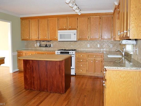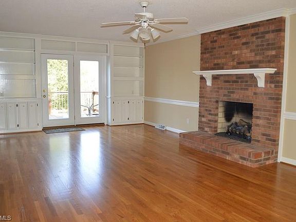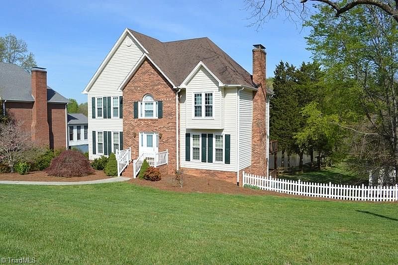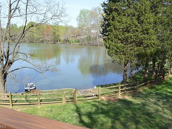 Rare Kernersville waterfront 4 bedroom 3 1/2 bath on the largest picturesque lot on the lake.Huge kitchen w/ updated granite counters,custom cabinets,movable island & gas stove.Gorgeous views from sunroom located off of the kitchen w/ access to a large upper deck.Hardwood floors throughout main level living room,kitchen,dining room & entry.Custom built-ins & gas logs in living room.Master bedroom includes tray ceilings & a large ensuite bathroom w/ skylight & vaulted ceiling.