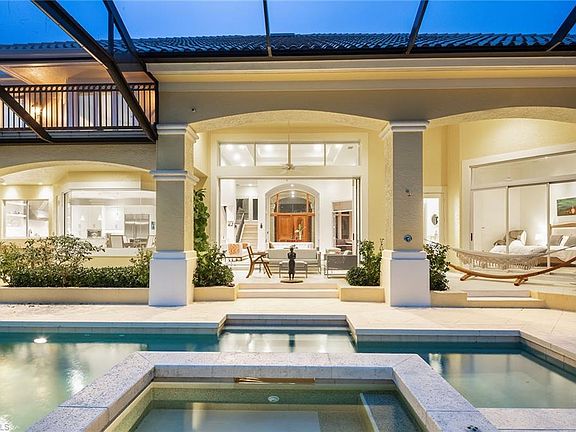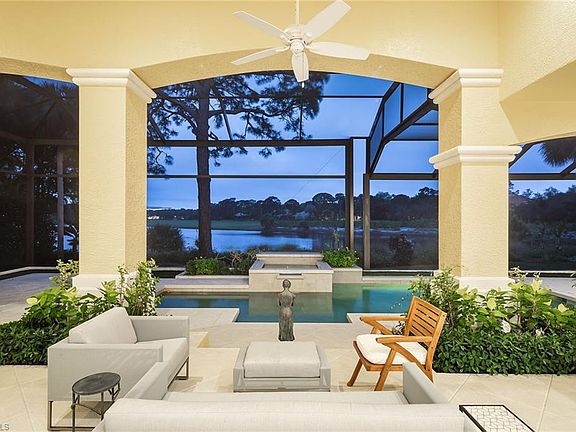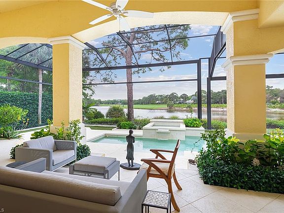 Spectacular forever lake and golf course views in the heart of Collier's Reserve are the backdrop for this stunning London Bay built home. Boasting sophisticated, renovated kitchen and baths, this home offers unparalleled living space inside and out and an open great room with soaring 18-foot ceilings and 10-foot pocket sliders. Renovated cook's kitchen with quartz center island, new Wolf eight-burner stove, Sub-Zero refrigerator and wine cooler. Gorgeous spa-like renovated primary bath with large walk-in shower. The versatile floor plan includes large den with built ins and flex room on first floor and gathering area upstairs with two ensuite guest rooms, large balcony and huge storage room. The timeless travertine floors complementing the wide plank light oak flooring, abundance of windows, natural light and immaculate condition make this sprawling beauty move-in ready. The new roof and picture window screen cage complete the package. As of March 22, there is no one on the Collier's Reserve resident golf membership wait list. Home has third golf cart garage in rear with paved path to driveway. Collier's Reserve is an intimate community with only 224 homes less than two miles from Vanderbilt Beach. Collier's Reserve natural beauty on 450 acres was recognized as the world's first-ever Audubon Signature Sanctuary.