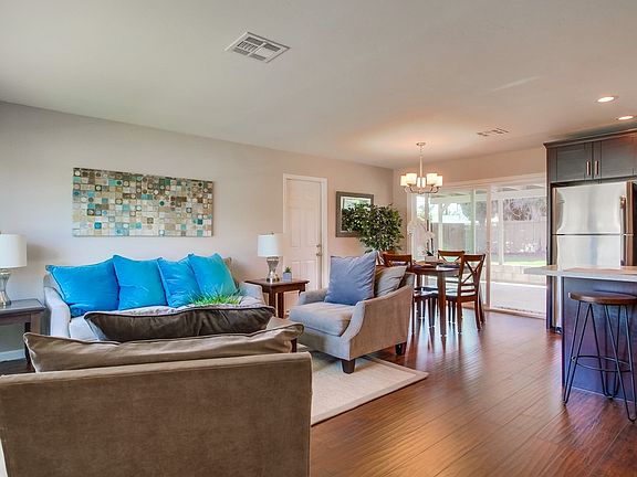 Upscale design meets affordability in this Spring Valley home that boasts tons of curb appeal and gorgeous finishes throughout. Open concept chef's gourmet kitchen with a breakfast bar, dining and living provide the perfect atmosphere for entertaining your loved ones. Three bedrooms and a generous sized bathroom with sophisticated tile design complete this perfect home. Enjoy dining outside on your over-sized covered patio that overlooks a generous sized back yard with lush landscaping and a fire pit.