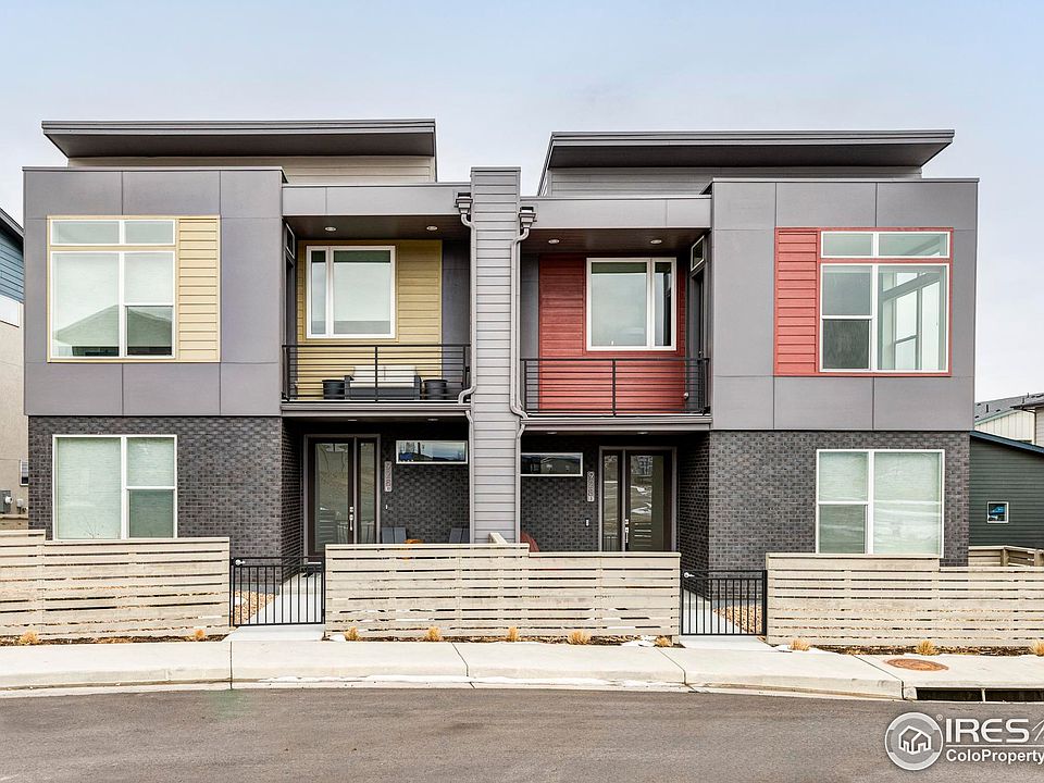 Contemporary design collides with breathtaking views in this newer construction Blue Sage residence. This lock and leave half duplex is almost brand new! Enjoy west facing snow capped mountain views from the kitchen and west facing covered front patio and covered deck! This adorable unit has upgrades throughout including 10 foot ceilings, hardwood floors, walk-in pantry, quartz countertops, stainless steel appliances with a gas range, interior maple doors, custom backsplash and a 2 car garage with epoxy finished flooring. Designed to embrace radiant natural light, expansive windows stretch across the front of the interiors showcasing sweeping mountain views. The upper level serves as the heart of the home, featuring an open floorplan wrapped in a serene, neutral color palette. Enjoy relaxing in the living room or entertaining guests in a sunlit dining area. Two sizable bedrooms, a full bath and a stackable laundry closet complete the upper level. The main level offers versatility w/ a flex bedroom and en-suite bath - perfect for use as an office or guest bedroom. Imagine soaking in the beauty of stunning sunsets from an upper deck. This residence offers stylish, low-maintenance living in a desirable location w/ proximity to Wanaka Lake, Coal Creek Trail, Hecla Lake and Old Town Louisville. Welcome home!